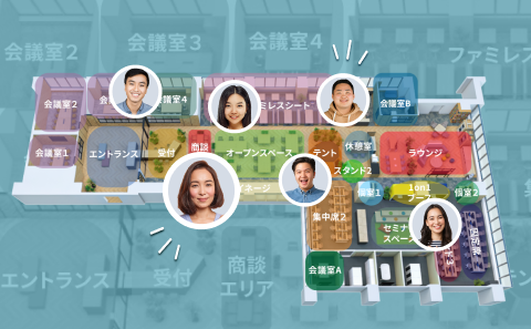 Wi-Fiやビーコンを用いて、居場所を表示。フリーアドレスでも、話したい相手の居場所をすぐに確認することができます。