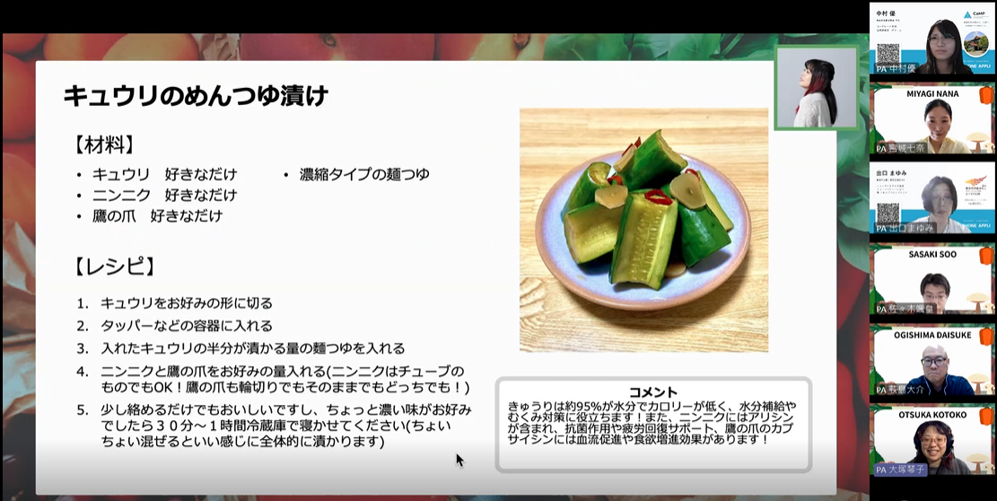 朝食欠食対策 野菜摂取レシピ・健康アプリ紹介、AIよる栄養アドバイス 社内講師 |
